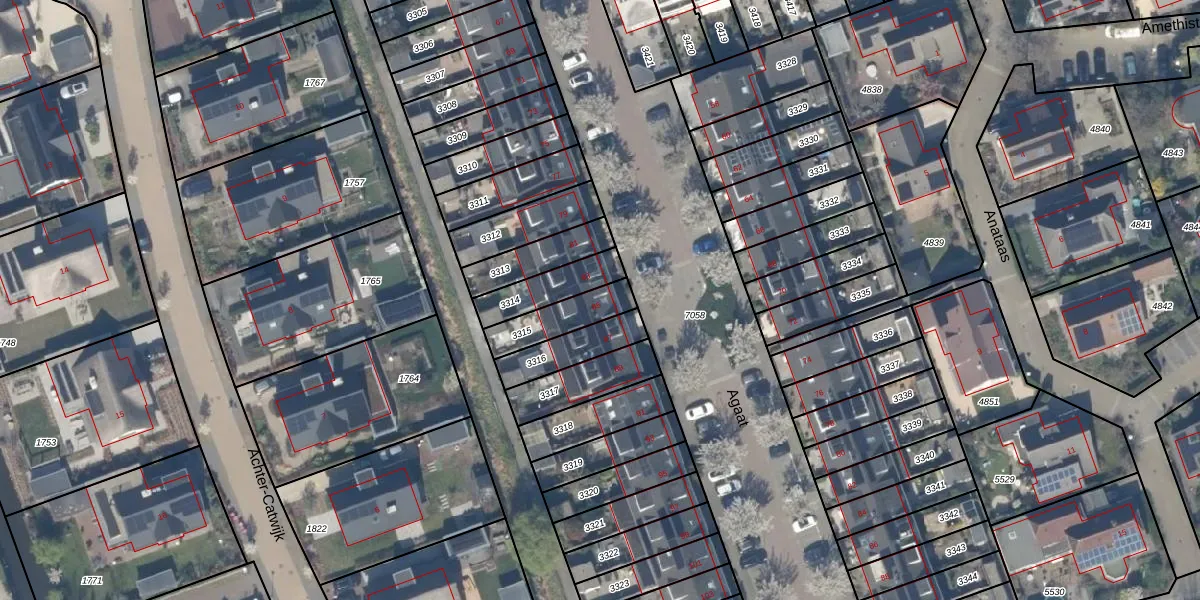 Gebruik de zoekbalk of klik op een perceel voor informatie over de adressen binnen dit perceel.