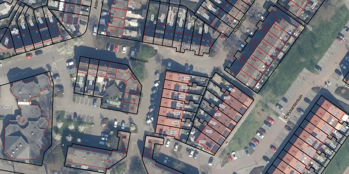 Akeleituin 60 is gelegen op kadastraal perceel ZWD01B7664. Deze kadastrale aanduiding is uniek en wordt gebruikt door het Kadaster om eigendomsrechten en andere zakelijke rechten vast te leggen. Het perceel maakt onderdeel uit van de kadastrale gemeente Zegwaard.