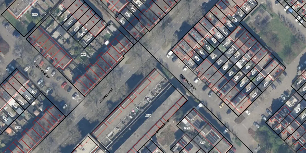 Het perceel waarop Akkerdreef 154 staat heeft een oppervlakte van 1834 m². Dit is een zeer groot perceel. De perceeloppervlakte wordt geregistreerd door het Kadaster. Gedetailleerde informatie over de maten van dit perceel kunt u vinden in het rapport Kadastrale kaart met maatvoering van Akkerdreef 154.