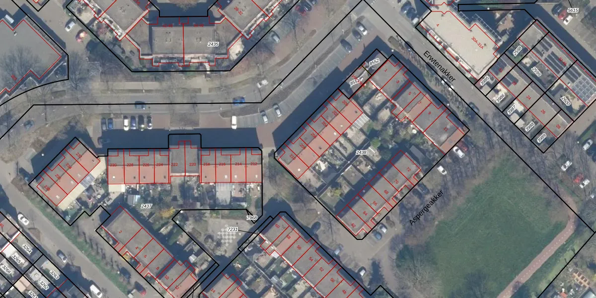 Het perceel waarop Akkerdreef 208 staat heeft een oppervlakte van 2069 m². Dit is een zeer groot perceel. De perceeloppervlakte wordt geregistreerd door het Kadaster. Gedetailleerde informatie over de maten van dit perceel kunt u vinden in het rapport Kadastrale kaart met maatvoering van Akkerdreef 208.