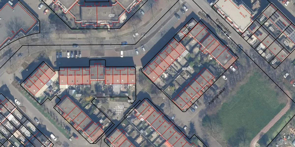 Akkerdreef 210 is gelegen op kadastraal perceel ZWD01B2438. Deze kadastrale aanduiding is uniek en wordt gebruikt door het Kadaster om eigendomsrechten en andere zakelijke rechten vast te leggen. Het perceel maakt onderdeel uit van de kadastrale gemeente Zegwaard.