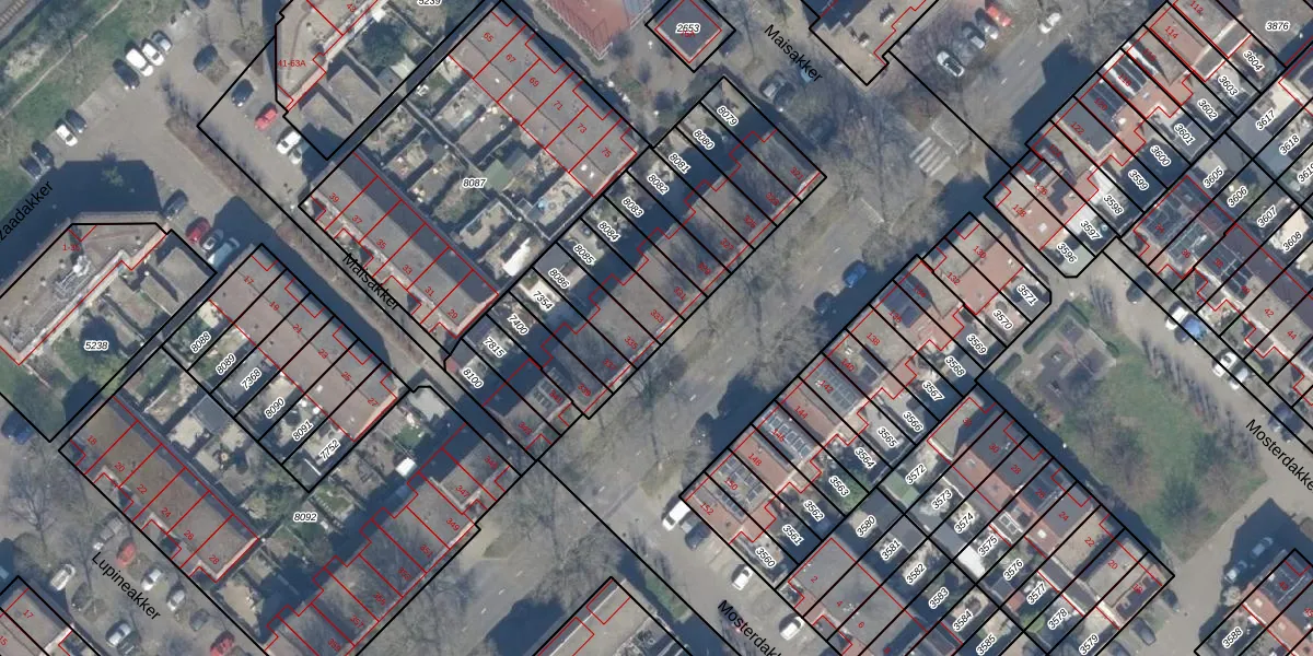 Gebruik de zoekbalk of klik op een perceel voor informatie over de adressen binnen dit perceel.