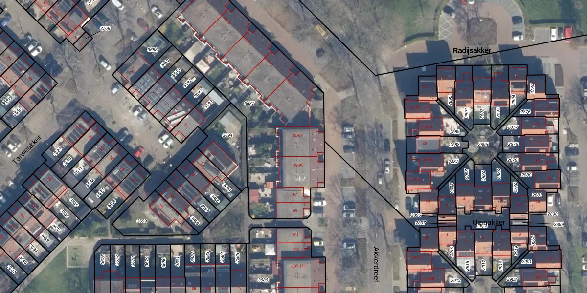 Akkerdreef 87 is gelegen op kadastraal perceel ZWD01B3687. Deze kadastrale aanduiding is uniek en wordt gebruikt door het Kadaster om eigendomsrechten en andere zakelijke rechten vast te leggen. Het perceel maakt onderdeel uit van de kadastrale gemeente Zegwaard.