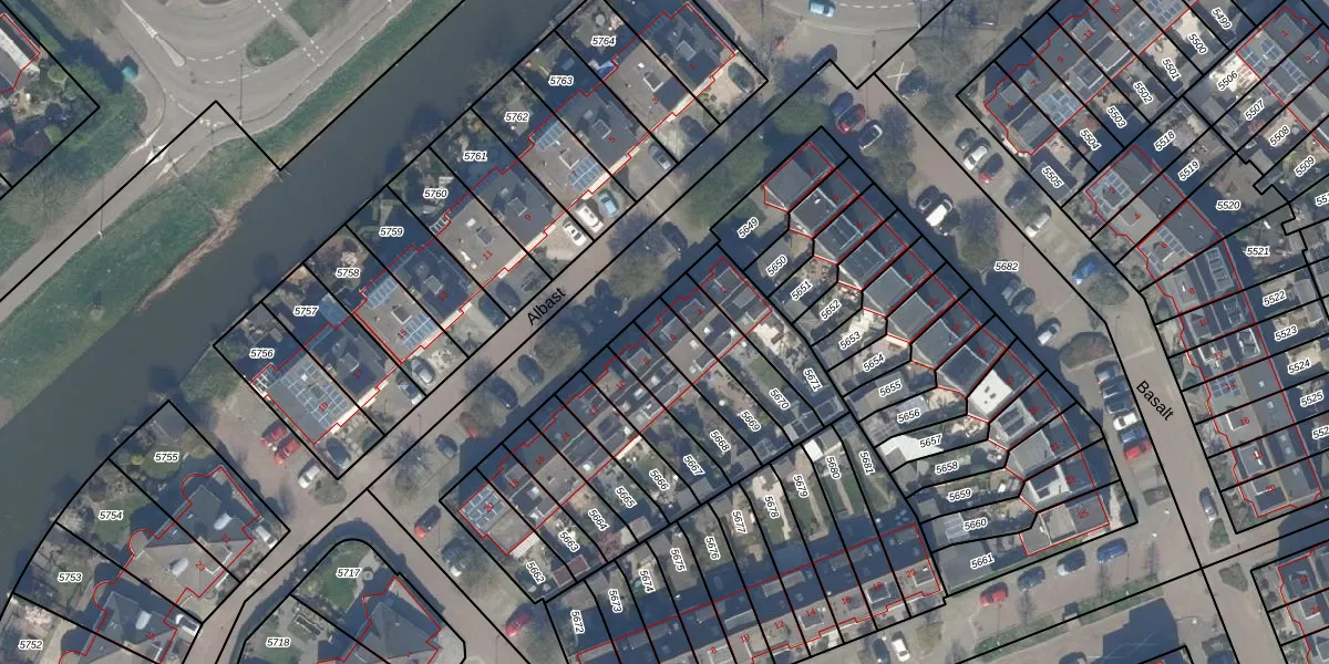 Het perceel waarop Albast 6 staat heeft een oppervlakte van 162 m². Dit is een middelgroot perceel. De perceeloppervlakte wordt geregistreerd door het Kadaster. Gedetailleerde informatie over de maten van dit perceel kunt u vinden in het rapport Kadastrale kaart met maatvoering van Albast 6.