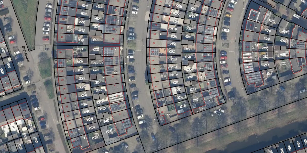 Gebruik de zoekbalk of klik op een perceel voor informatie over de adressen binnen dit perceel.