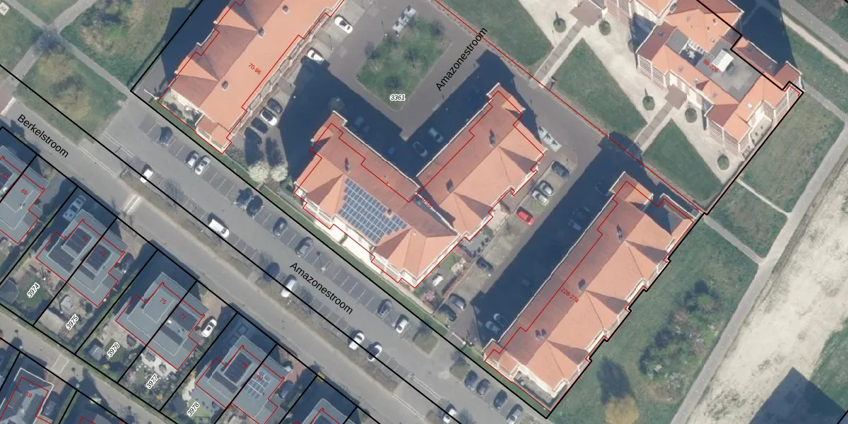 Het perceel waarop Amazonestroom 32 staat heeft een oppervlakte van 1,2 ha. Dit is een zeer groot perceel. De perceeloppervlakte wordt geregistreerd door het Kadaster. Gedetailleerde informatie over de maten van dit perceel kunt u vinden in het rapport Kadastrale kaart met maatvoering van Amazonestroom 32.