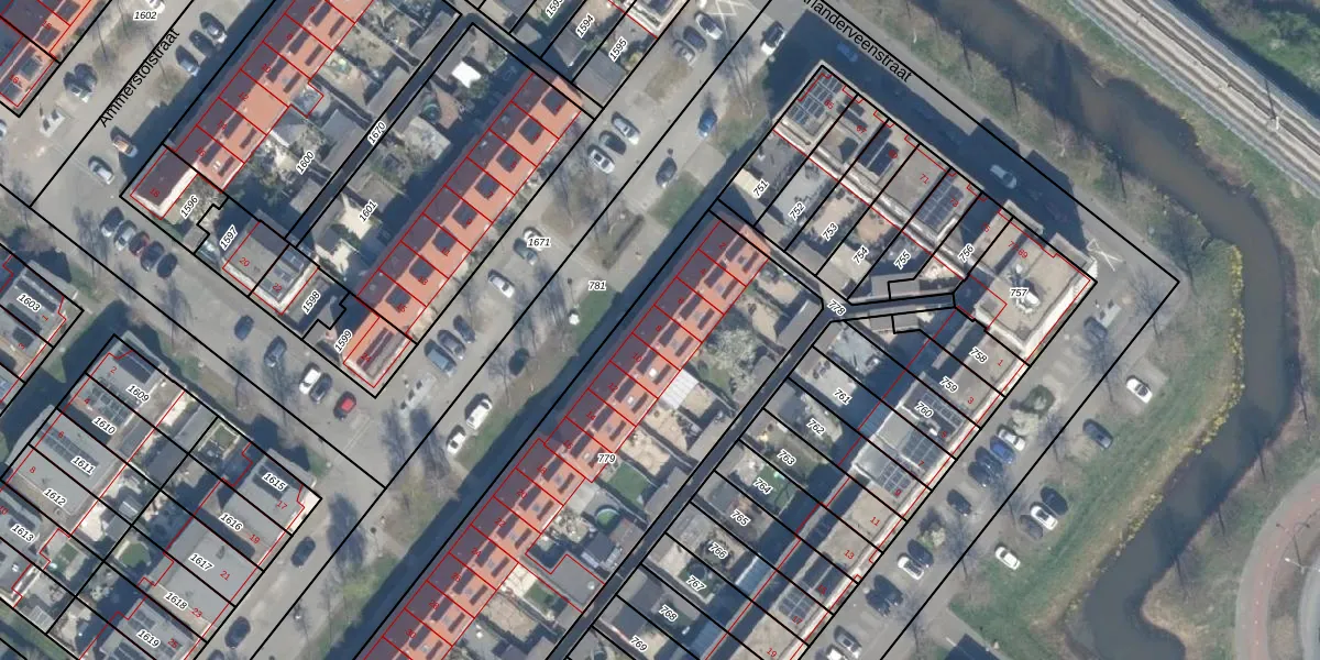 Het perceel waarop Ameidestraat 8 staat heeft een oppervlakte van 2361 m². Dit is een zeer groot perceel. De perceeloppervlakte wordt geregistreerd door het Kadaster. Gedetailleerde informatie over de maten van dit perceel kunt u vinden in het rapport Kadastrale kaart met maatvoering van Ameidestraat 8.
