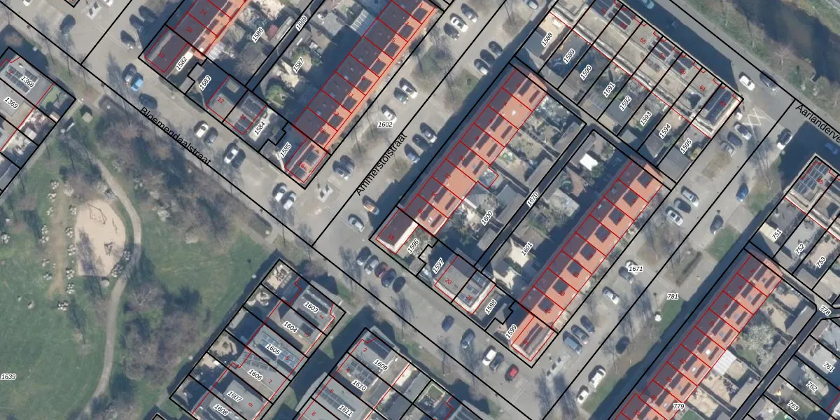 Het perceel waarop Ammerstolstraat 16 staat heeft een oppervlakte van 1024 m². Dit is een zeer groot perceel. De perceeloppervlakte wordt geregistreerd door het Kadaster. Gedetailleerde informatie over de maten van dit perceel kunt u vinden in het rapport Kadastrale kaart met maatvoering van Ammerstolstraat 16.