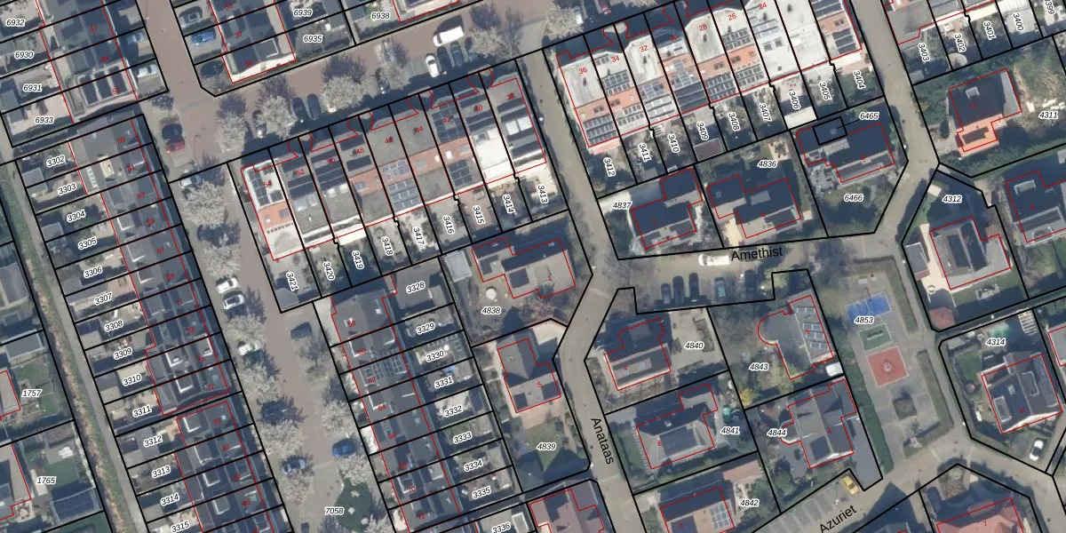 Gebruik de zoekbalk of klik op een perceel voor informatie over de adressen binnen dit perceel.