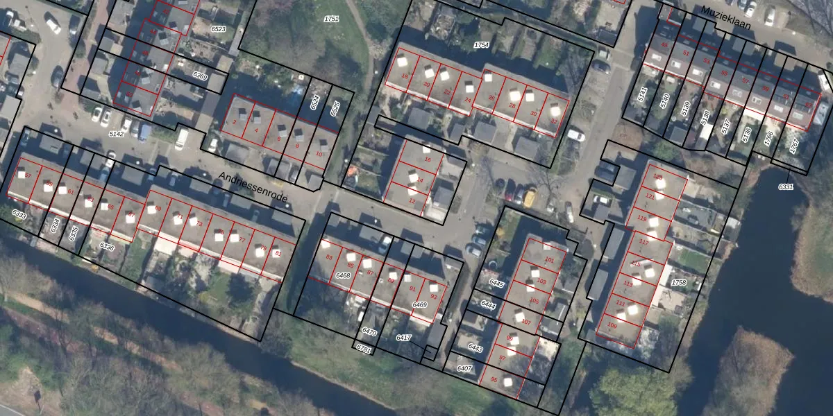 Het perceel waarop Andriessenrode 12 staat heeft een oppervlakte van 1830 m². Dit is een zeer groot perceel. De perceeloppervlakte wordt geregistreerd door het Kadaster. Gedetailleerde informatie over de maten van dit perceel kunt u vinden in het rapport Kadastrale kaart met maatvoering van Andriessenrode 12.