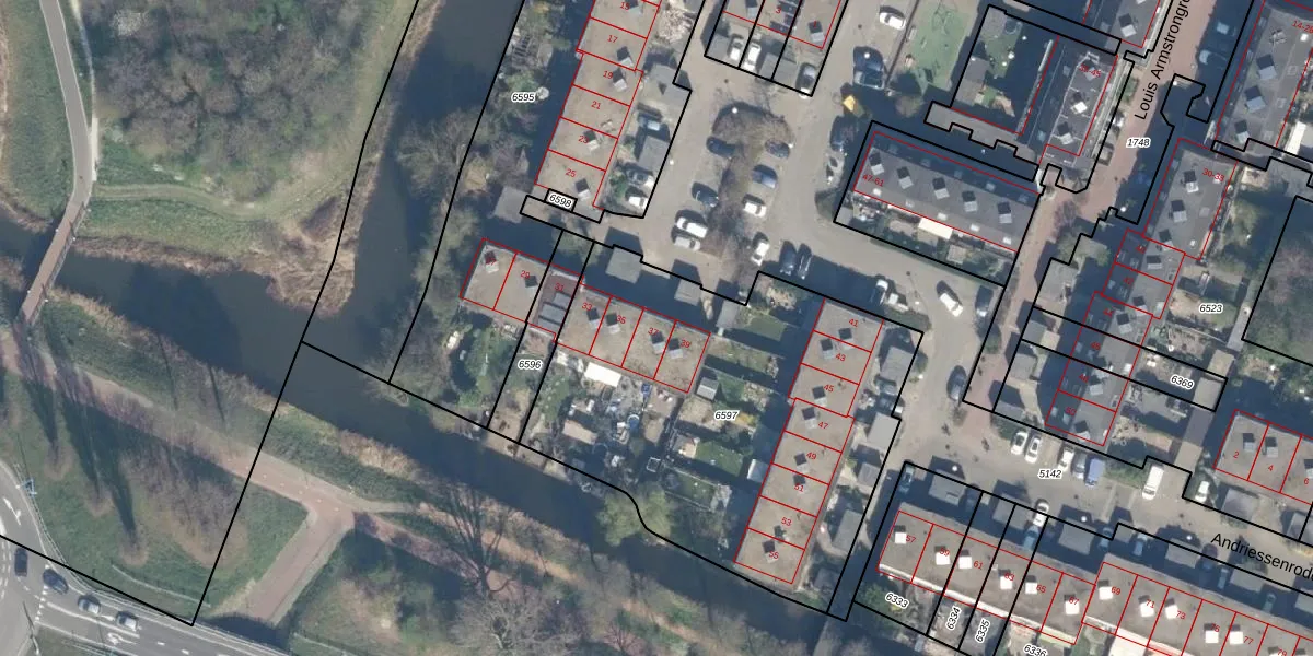 Het perceel waarop Andriessenrode 37 staat heeft een oppervlakte van 2100 m². Dit is een zeer groot perceel. De perceeloppervlakte wordt geregistreerd door het Kadaster. Gedetailleerde informatie over de maten van dit perceel kunt u vinden in het rapport Kadastrale kaart met maatvoering van Andriessenrode 37.
