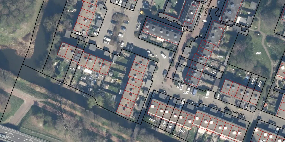Het perceel waarop Andriessenrode 43 staat heeft een oppervlakte van 2100 m². Dit is een zeer groot perceel. De perceeloppervlakte wordt geregistreerd door het Kadaster. Gedetailleerde informatie over de maten van dit perceel kunt u vinden in het rapport Kadastrale kaart met maatvoering van Andriessenrode 43.