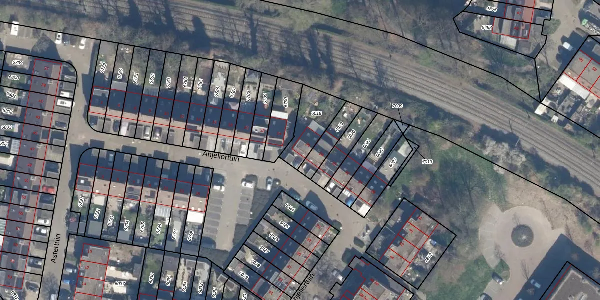 Gebruik de zoekbalk of klik op een perceel voor informatie over de adressen binnen dit perceel.