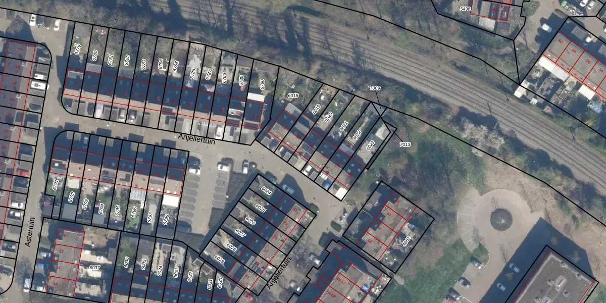 Het perceel waarop Anjeliertuin 30 staat heeft een oppervlakte van 163 m². Dit is een middelgroot perceel. De perceeloppervlakte wordt geregistreerd door het Kadaster. Gedetailleerde informatie over de maten van dit perceel kunt u vinden in het rapport Kadastrale kaart met maatvoering van Anjeliertuin 30.