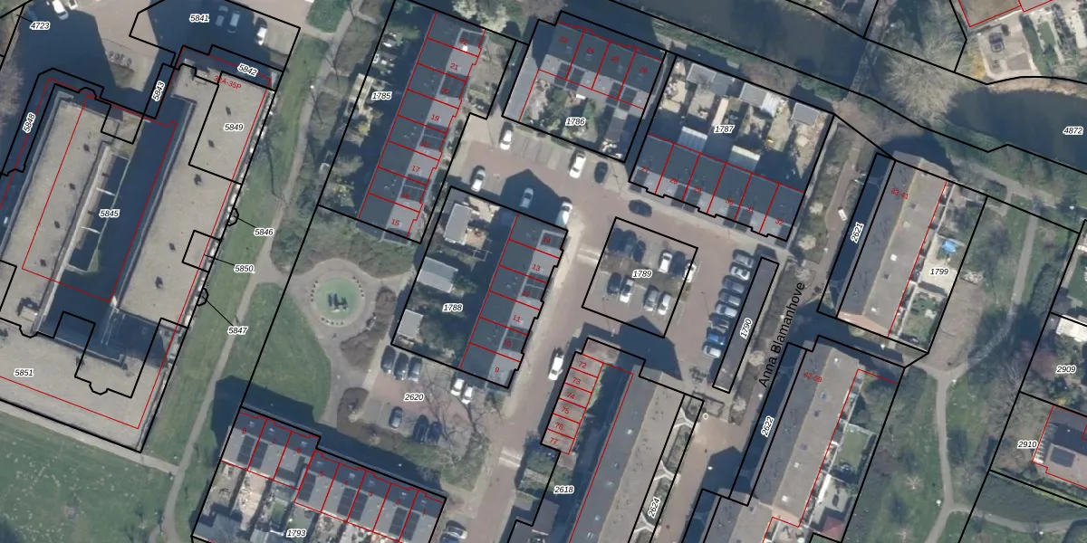 Het perceel waarop Anna Blamanhove 13 staat heeft een oppervlakte van 719 m². Dit is een groot perceel. De perceeloppervlakte wordt geregistreerd door het Kadaster. Gedetailleerde informatie over de maten van dit perceel kunt u vinden in het rapport Kadastrale kaart met maatvoering van Anna Blamanhove 13.