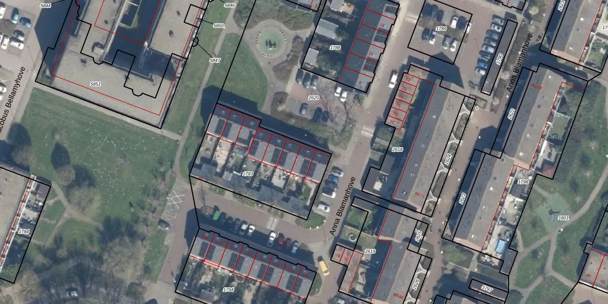 Het perceel waarop Anna Blamanhove 2 staat heeft een oppervlakte van 972 m². Dit is een groot perceel. De perceeloppervlakte wordt geregistreerd door het Kadaster. Gedetailleerde informatie over de maten van dit perceel kunt u vinden in het rapport Kadastrale kaart met maatvoering van Anna Blamanhove 2.