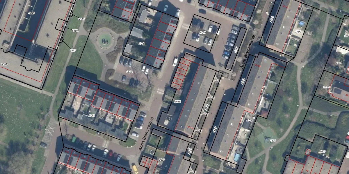 Het perceel waarop Anna Blamanhove 77 staat heeft een oppervlakte van 861 m². Dit is een groot perceel. De perceeloppervlakte wordt geregistreerd door het Kadaster. Gedetailleerde informatie over de maten van dit perceel kunt u vinden in het rapport Kadastrale kaart met maatvoering van Anna Blamanhove 77.