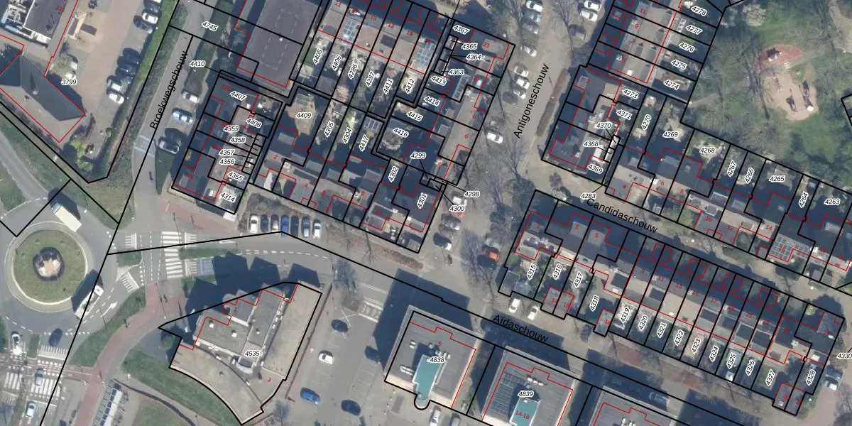 Gebruik de zoekbalk of klik op een perceel voor informatie over de adressen binnen dit perceel.