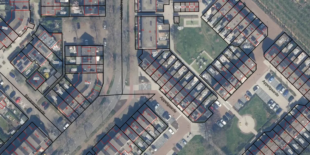 Het perceel waarop Appelgaarde 65 staat heeft een oppervlakte van 105 m². Dit is een middelgroot perceel. De perceeloppervlakte wordt geregistreerd door het Kadaster. Gedetailleerde informatie over de maten van dit perceel kunt u vinden in het rapport Kadastrale kaart met maatvoering van Appelgaarde 65.