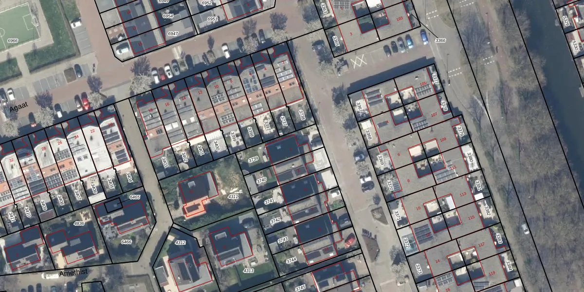 Het perceel waarop Aquamarijn 1 staat heeft een oppervlakte van 247 m². Dit is een middelgroot perceel. De perceeloppervlakte wordt geregistreerd door het Kadaster. Gedetailleerde informatie over de maten van dit perceel kunt u vinden in het rapport Kadastrale kaart met maatvoering van Aquamarijn 1.