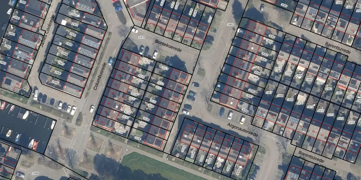 Gebruik de zoekbalk of klik op een perceel voor informatie over de adressen binnen dit perceel.
