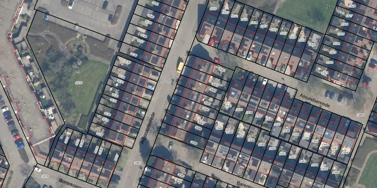 Gebruik de zoekbalk of klik op een perceel voor informatie over de adressen binnen dit perceel.