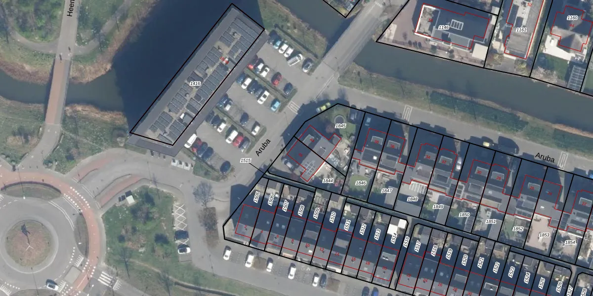 Het perceel waarop Aruba 46 staat heeft een oppervlakte van 255 m². Dit is een middelgroot perceel. De perceeloppervlakte wordt geregistreerd door het Kadaster. Gedetailleerde informatie over de maten van dit perceel kunt u vinden in het rapport Kadastrale kaart met maatvoering van Aruba 46.