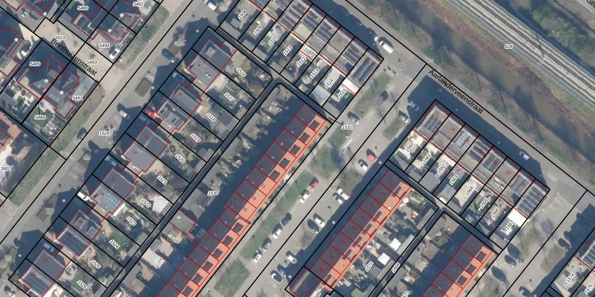 Het perceel waarop Asperenstraat 5 staat heeft een oppervlakte van 2353 m². Dit is een zeer groot perceel. De perceeloppervlakte wordt geregistreerd door het Kadaster. Gedetailleerde informatie over de maten van dit perceel kunt u vinden in het rapport Kadastrale kaart met maatvoering van Asperenstraat 5.