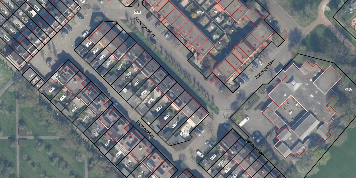 Het perceel waarop Aspergeakker 19 staat heeft een oppervlakte van 180 m². Dit is een middelgroot perceel. De perceeloppervlakte wordt geregistreerd door het Kadaster. Gedetailleerde informatie over de maten van dit perceel kunt u vinden in het rapport Kadastrale kaart met maatvoering van Aspergeakker 19.