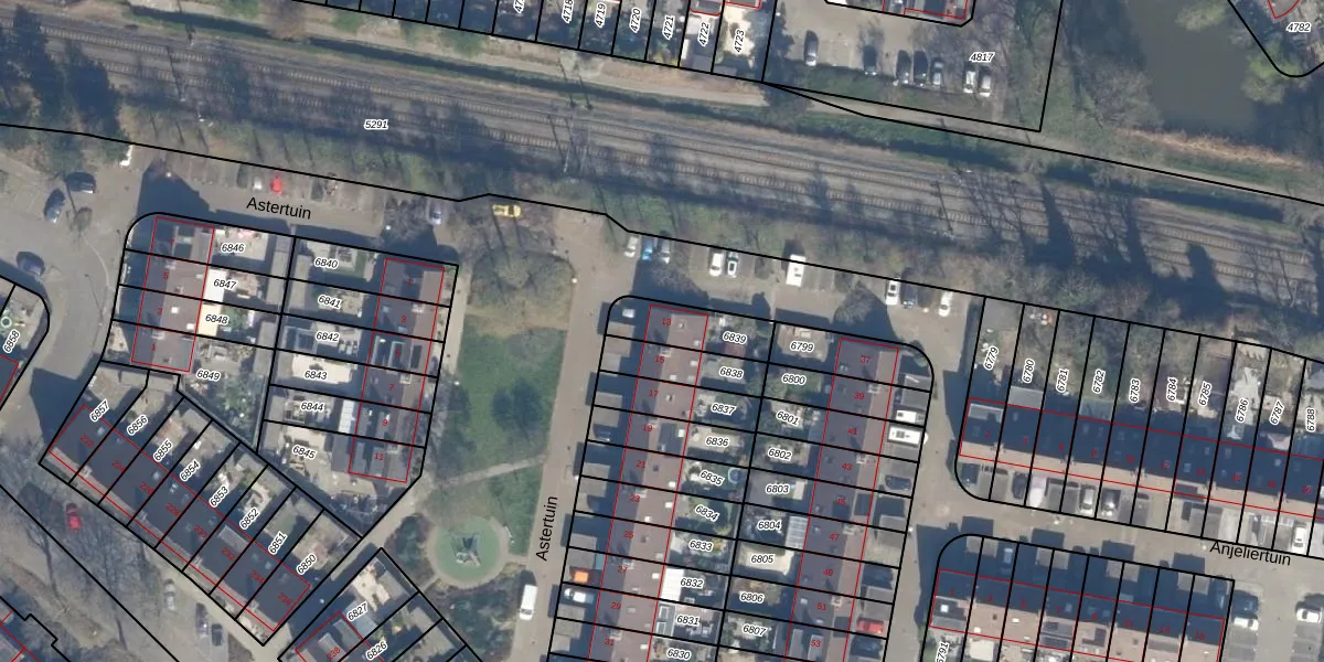 Gebruik de zoekbalk of klik op een perceel voor informatie over de adressen binnen dit perceel.