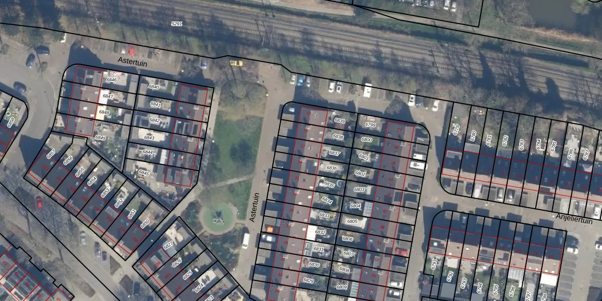 Gebruik de zoekbalk of klik op een perceel voor informatie over de adressen binnen dit perceel.