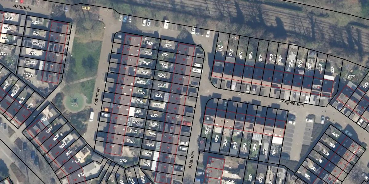 Gebruik de zoekbalk of klik op een perceel voor informatie over de adressen binnen dit perceel.