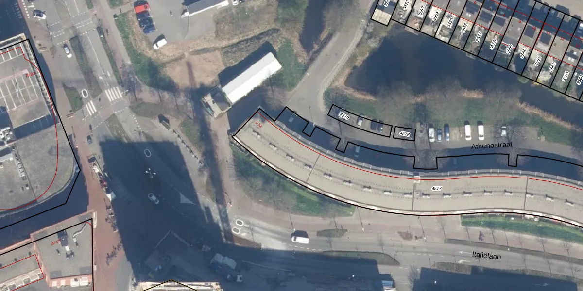 Het perceel waarop Athenestraat 3 staat heeft een oppervlakte van 2672 m². Dit is een zeer groot perceel. De perceeloppervlakte wordt geregistreerd door het Kadaster. Gedetailleerde informatie over de maten van dit perceel kunt u vinden in het rapport Kadastrale kaart met maatvoering van Athenestraat 3.