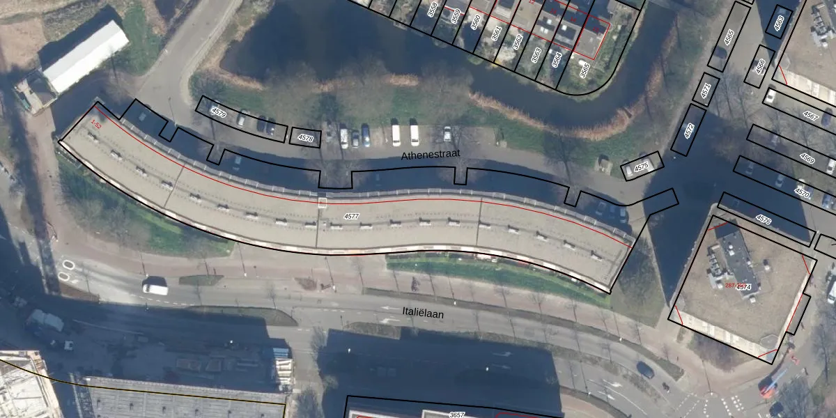 Het perceel waarop Athenestraat 46 staat heeft een oppervlakte van 2672 m². Dit is een zeer groot perceel. De perceeloppervlakte wordt geregistreerd door het Kadaster. Gedetailleerde informatie over de maten van dit perceel kunt u vinden in het rapport Kadastrale kaart met maatvoering van Athenestraat 46.