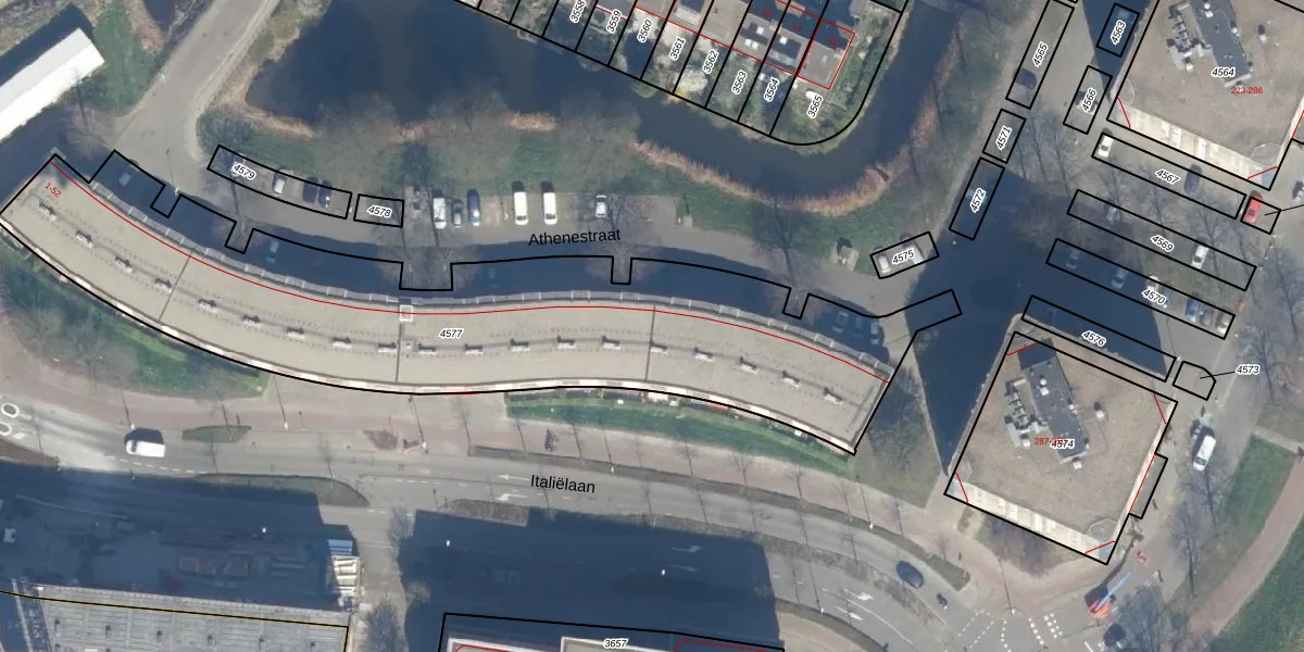 Het perceel waarop Athenestraat 48 staat heeft een oppervlakte van 2672 m². Dit is een zeer groot perceel. De perceeloppervlakte wordt geregistreerd door het Kadaster. Gedetailleerde informatie over de maten van dit perceel kunt u vinden in het rapport Kadastrale kaart met maatvoering van Athenestraat 48.