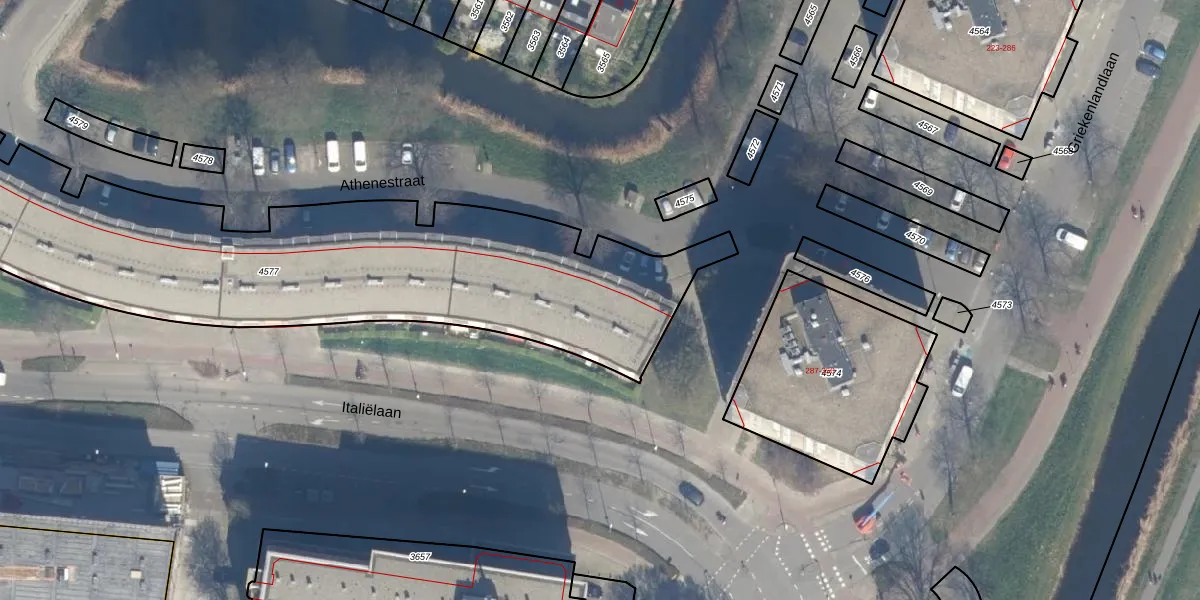 Het perceel waarop Athenestraat 51 staat heeft een oppervlakte van 2672 m². Dit is een zeer groot perceel. De perceeloppervlakte wordt geregistreerd door het Kadaster. Gedetailleerde informatie over de maten van dit perceel kunt u vinden in het rapport Kadastrale kaart met maatvoering van Athenestraat 51.