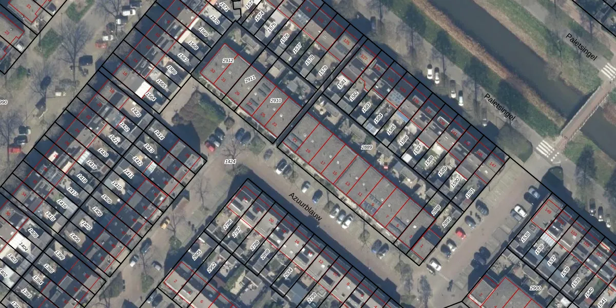 Het perceel waarop Azuurblauw 19 staat heeft een oppervlakte van 1119 m². Dit is een zeer groot perceel. De perceeloppervlakte wordt geregistreerd door het Kadaster. Gedetailleerde informatie over de maten van dit perceel kunt u vinden in het rapport Kadastrale kaart met maatvoering van Azuurblauw 19.