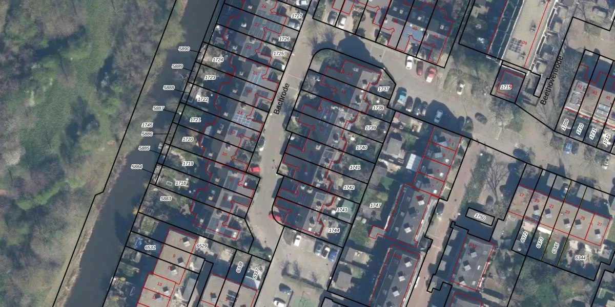 Gebruik de zoekbalk of klik op een perceel voor informatie over de adressen binnen dit perceel.