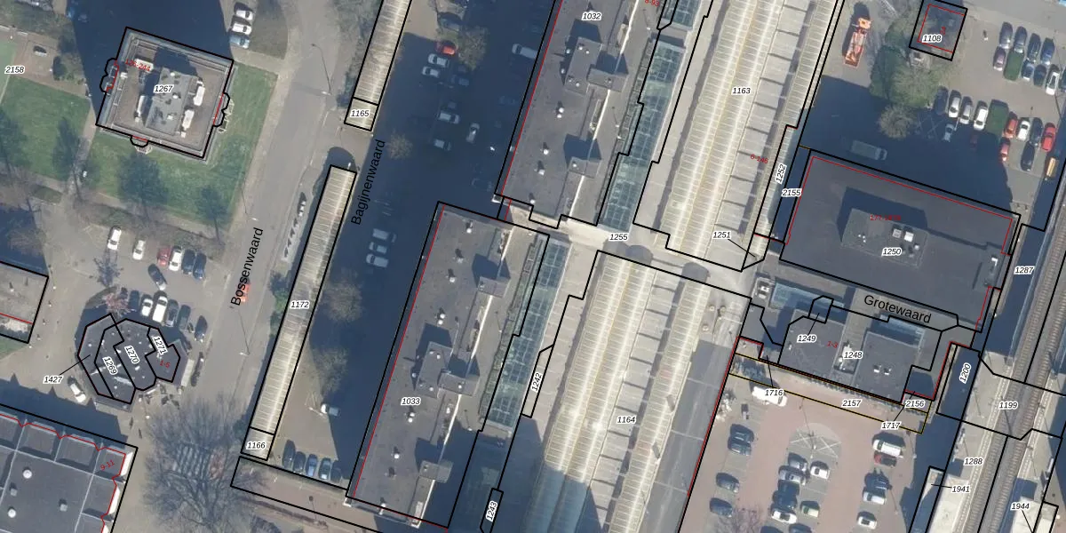 Het perceel waarop Bagijnenwaard 182 staat heeft een oppervlakte van 1206 m². Dit is een zeer groot perceel. De perceeloppervlakte wordt geregistreerd door het Kadaster. Gedetailleerde informatie over de maten van dit perceel kunt u vinden in het rapport Kadastrale kaart met maatvoering van Bagijnenwaard 182.