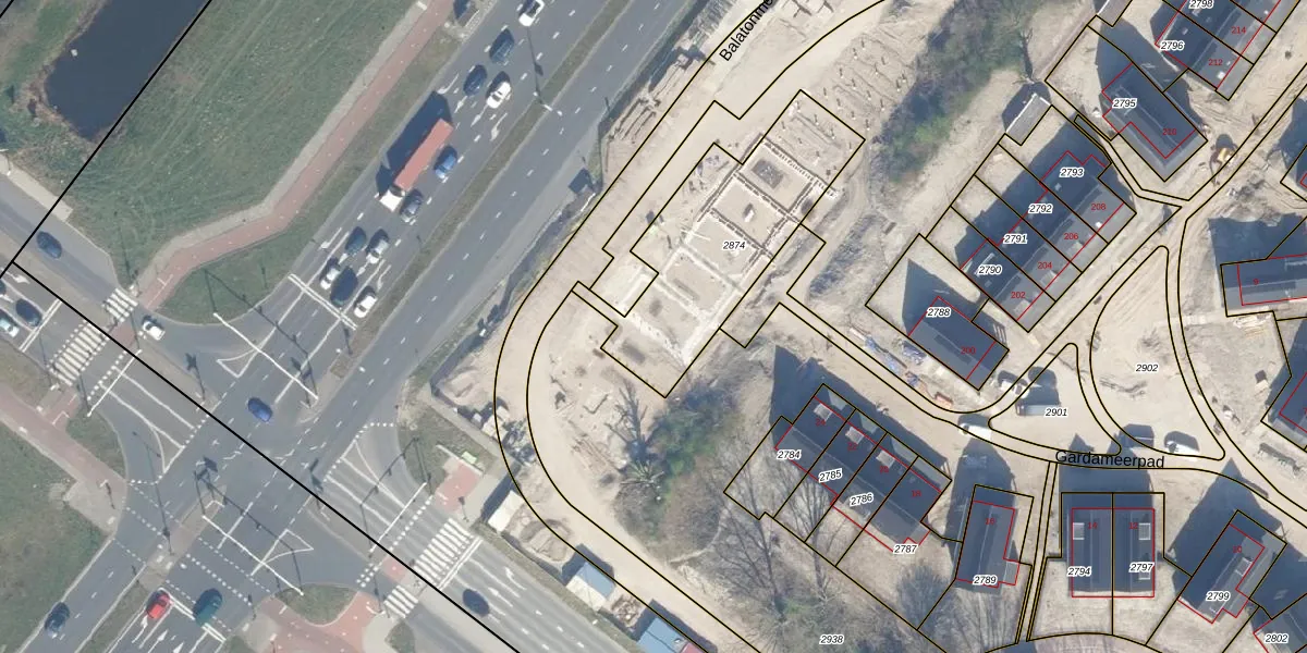 Het perceel waarop Balatonmeer 35 staat heeft een oppervlakte van 757 m². Dit is een groot perceel. De perceeloppervlakte wordt geregistreerd door het Kadaster. Gedetailleerde informatie over de maten van dit perceel kunt u vinden in het rapport Kadastrale kaart met maatvoering van Balatonmeer 35.