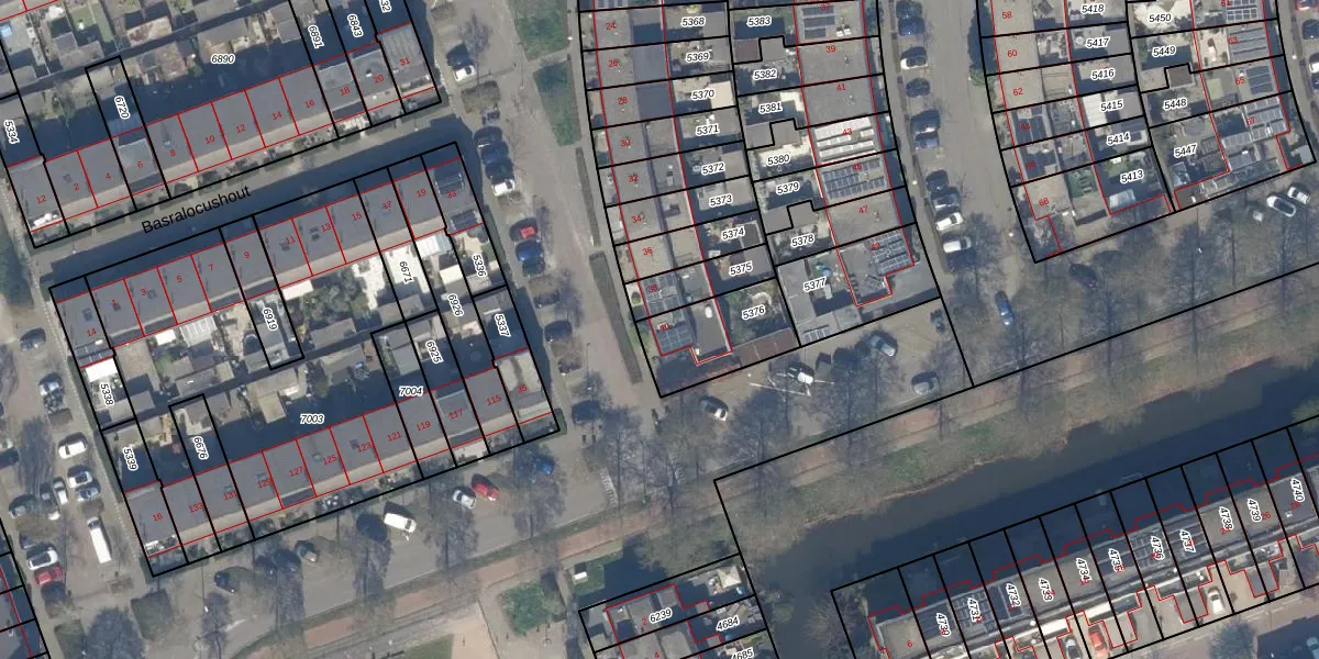 Gebruik de zoekbalk of klik op een perceel voor informatie over de adressen binnen dit perceel.