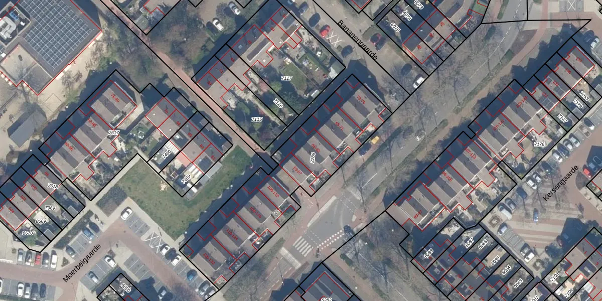 Het perceel waarop Bananengaarde 55 staat heeft een oppervlakte van 1500 m². Dit is een zeer groot perceel. De perceeloppervlakte wordt geregistreerd door het Kadaster. Gedetailleerde informatie over de maten van dit perceel kunt u vinden in het rapport Kadastrale kaart met maatvoering van Bananengaarde 55.