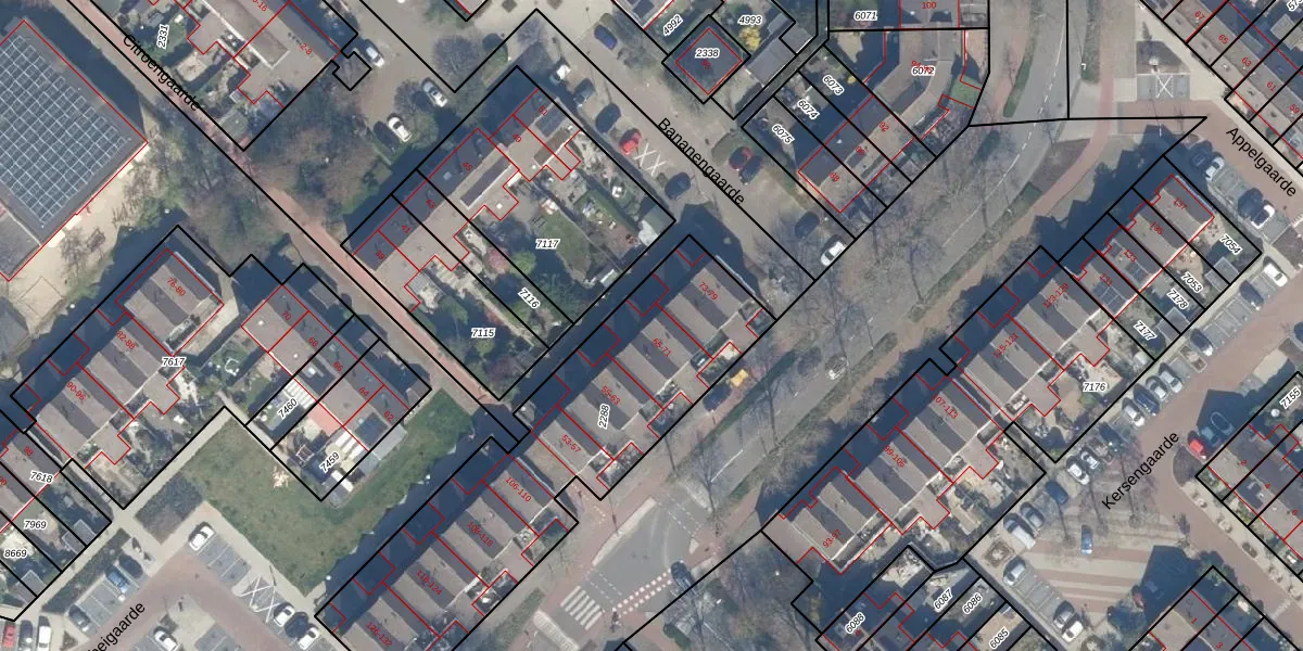 Het perceel waarop Bananengaarde 71 staat heeft een oppervlakte van 1500 m². Dit is een zeer groot perceel. De perceeloppervlakte wordt geregistreerd door het Kadaster. Gedetailleerde informatie over de maten van dit perceel kunt u vinden in het rapport Kadastrale kaart met maatvoering van Bananengaarde 71.