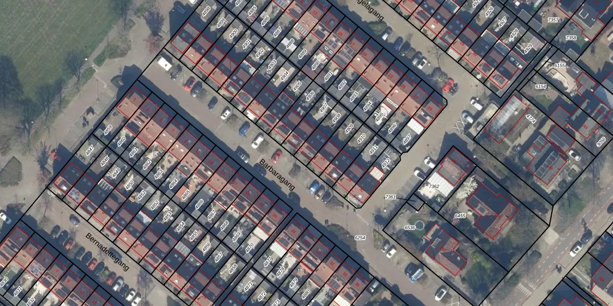 Het perceel waarop Barbaragang 22 staat heeft een oppervlakte van 124 m². Dit is een middelgroot perceel. De perceeloppervlakte wordt geregistreerd door het Kadaster. Gedetailleerde informatie over de maten van dit perceel kunt u vinden in het rapport Kadastrale kaart met maatvoering van Barbaragang 22.