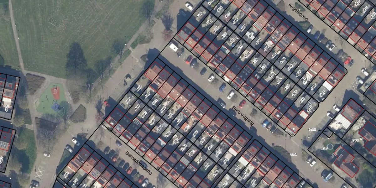 Het perceel waarop Barbaragang 9 staat heeft een oppervlakte van 126 m². Dit is een middelgroot perceel. De perceeloppervlakte wordt geregistreerd door het Kadaster. Gedetailleerde informatie over de maten van dit perceel kunt u vinden in het rapport Kadastrale kaart met maatvoering van Barbaragang 9.