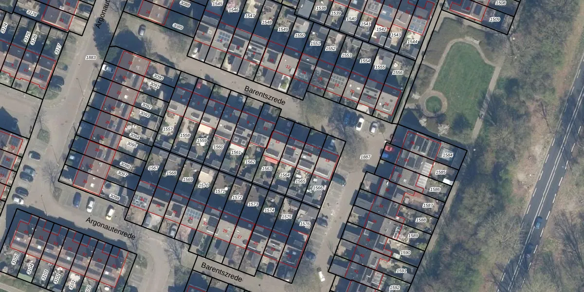 Gebruik de zoekbalk of klik op een perceel voor informatie over de adressen binnen dit perceel.