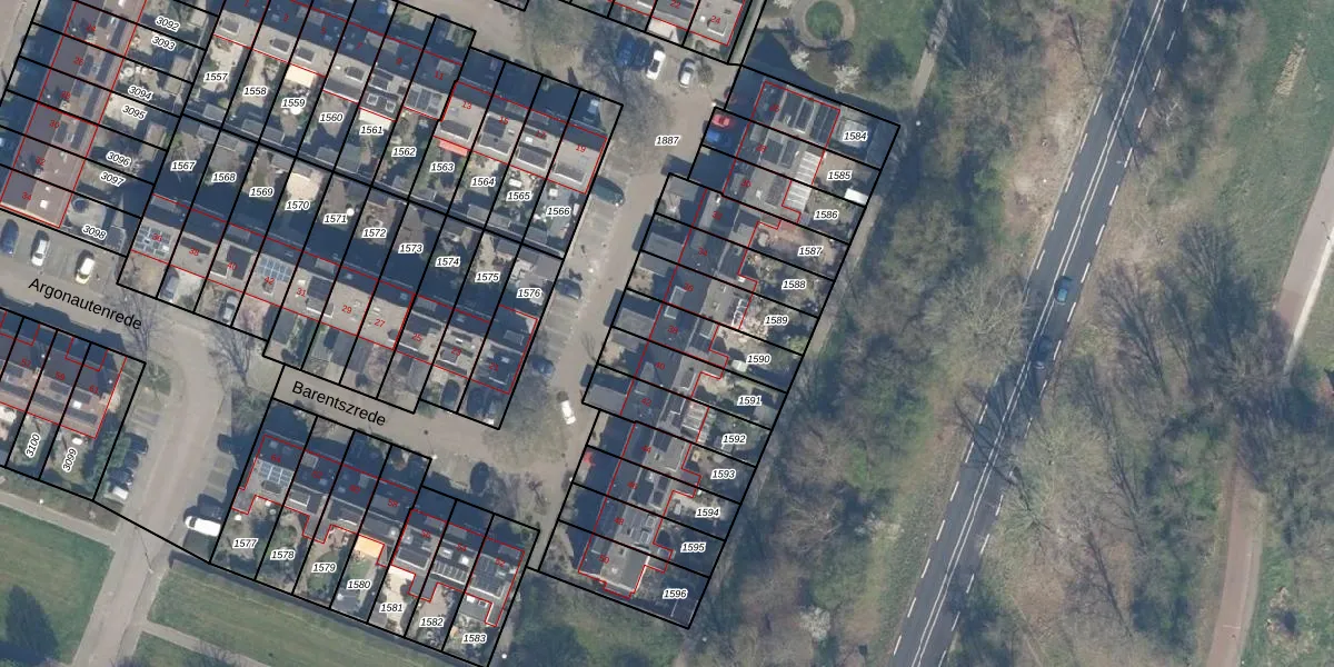 Gebruik de zoekbalk of klik op een perceel voor informatie over de adressen binnen dit perceel.