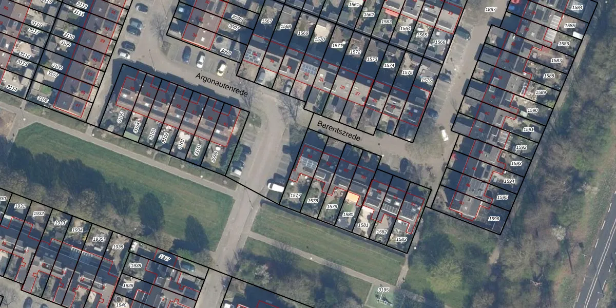 Gebruik de zoekbalk of klik op een perceel voor informatie over de adressen binnen dit perceel.