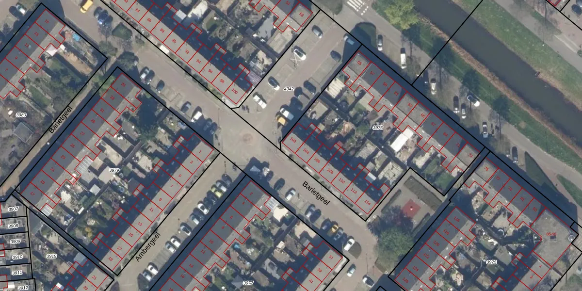 Barietgeel 102 is gelegen op kadastraal perceel ZWD01C3976. Deze kadastrale aanduiding is uniek en wordt gebruikt door het Kadaster om eigendomsrechten en andere zakelijke rechten vast te leggen. Het perceel maakt onderdeel uit van de kadastrale gemeente Zegwaard.
