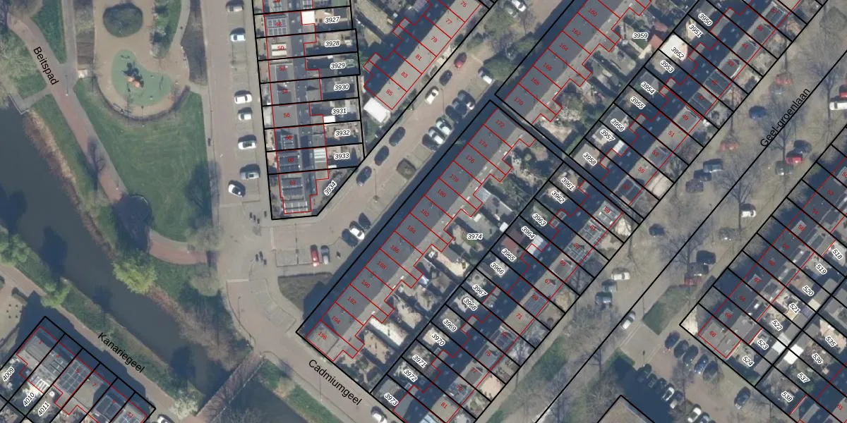 Het perceel waarop Barietgeel 182 staat heeft een oppervlakte van 1623 m². Dit is een zeer groot perceel. De perceeloppervlakte wordt geregistreerd door het Kadaster. Gedetailleerde informatie over de maten van dit perceel kunt u vinden in het rapport Kadastrale kaart met maatvoering van Barietgeel 182.